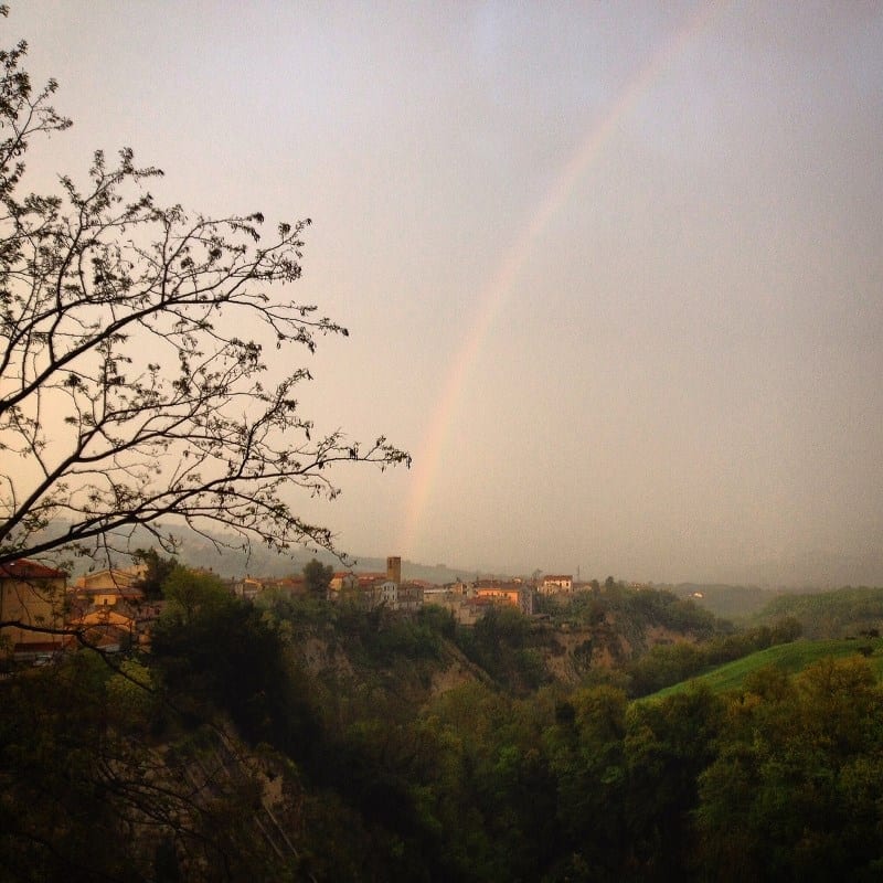 Appena arrivata, ho avuto modo di trascorre del tempo da sola, in tranquillità, gettando uno sguardo libero al centro di Campli. Pioveva, e quando il temporale si è allontanato è sbucato un arcobaleno che rendeva il verde delle colline ancor più acceso. Ho assaporato in questo scenario la sua tranquillità: le logge che raccontano di un ricco passato mercantile, Palazzo Farnese oggi sede del Comune, la larga piazza con il duomo, i portoni e le finestre con i segni del tempo, i bar con gli uomini del posto. Mi è bastato sedermi nel bar del paese, in attesa che terminasse la pioggia, per ricordarmi che nei piccoli borghi il tempo ha un sapore diverso: è fatto di incontri, di dialetto, di lunghi saluti e di calma.