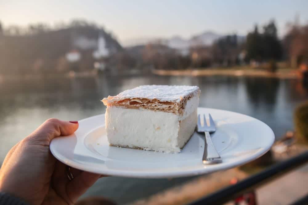 Poi, il ritorno sulle sponde per gustare la torta di Bled che ha nel numero 7 la sua quintessenza: la crema va cotta per sette minuti, la sfoglia è ripiegata per sette volte e la forma è di un quadrato che misura sette centimetri per lato. La torta è compatta e deliziosa e la ricetta è ancora quella originale del 1953.