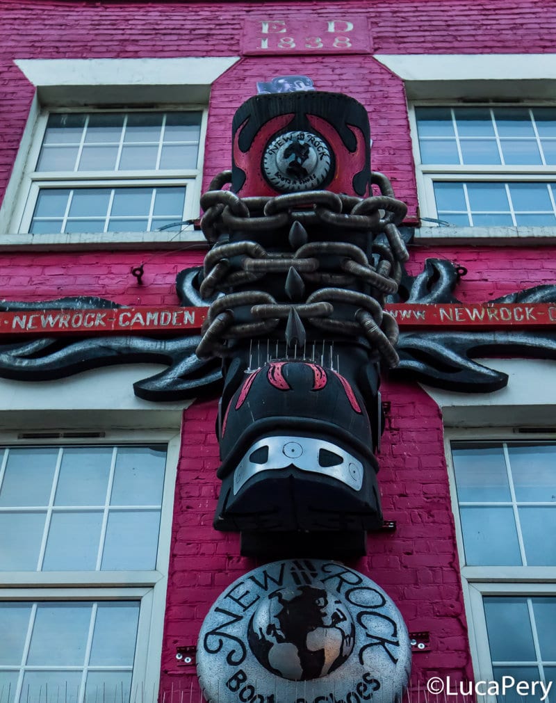 Uscire dalla metro e come prima cosa incontrare due ragazzi in camicia che sostengono un cartello con scritto “Tatoo” è il biglietto da visita di questa strada. Forse Camden non è poi così cambiata, penso. E allora, camminando piano piano scruto per prima cosa i vari negozi se ci sono ancora due cose che avevo visto tempo indietro. Si vendono dai più classici souvenir, alle cover per cellulare in legno alle mitiche, e ormai sorpassate in Italia, scarpe Buffalo – ve le ricordate? Scarpe nere con la zeppa alta di circa dieci centimetri – qui ancora in voga. Ogni tanto sfreccia qualche double decker rosso e qualche taxi nero, a ricordarmi che Londra, quella dei giorni nostri, è ancora viva e poco distante.