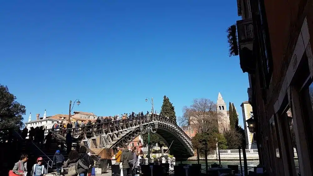se si arriva come noi da Mestre a Piazzale Roma il primo ponte che si incontra per entrare a Venezia è quello di Calatrava, tanto discusso ma senz’altro interessante da vedere; tra i più famosi il ponte di Rialto, perfettamente restaurato, il ponte dei Sospiri a fianco del Palazzo Ducale; e poi il ponte dell’Accademia in legno, e i tanti ponti e ponticelli in marmo che sono trovano ovunque.