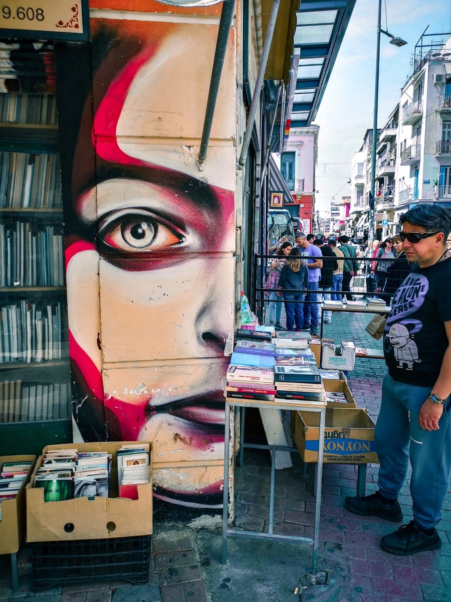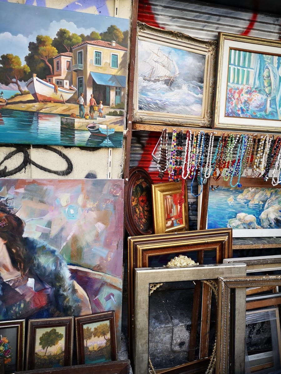 I mercatini delle pulci hanno sempre un atmosfera particolare. Qui ad Atene il mercatino delle pulci a Monastiraki è gigantesco e molto affollato, soprattutto se lo si visita di domenica, quando ai negozi fissi si aggiungono anche gli ambulanti.