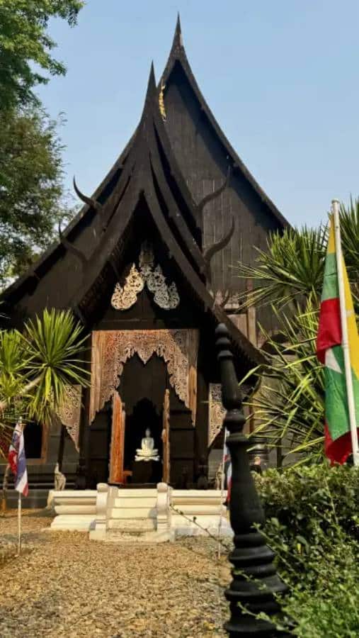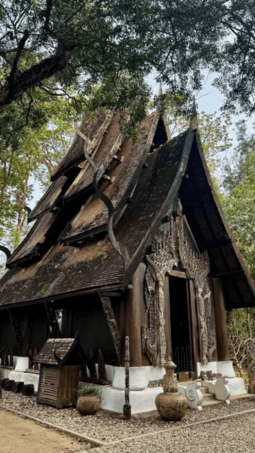 La Baan Dam è l’opera più iconica dell’artista thailandese Thawan Duchanee, che attraverso architetture completamente nere e dettagli volutamente provocatori ha voluto trasmettere un’estetica opposta a quella del celebre Tempio Bianco. Qui, invece della luce, domina l’ombra: sculture animalesche, ossa, corna e arredi cupi che stimolano l’immaginazione e accendono sensazioni contrastanti, tra curiosità e inquietudine.