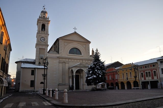 Attraversato il Po ne costeggiamo per un tratto gli argini fino a raggiungere Brescello. Molti visitatori si aggirano per le vie del comune e noi giungiamo in piazza Matteotti, di fronte alla Chiesa di Santa Maria Nascente. Si tratta proprio della chiesa dove spesso Fernandel, nei panni del parroco romagnolo, parlava con il crocifisso che oggi è conservato ed esposto in una cappelletta a sinistra dell’ingresso.