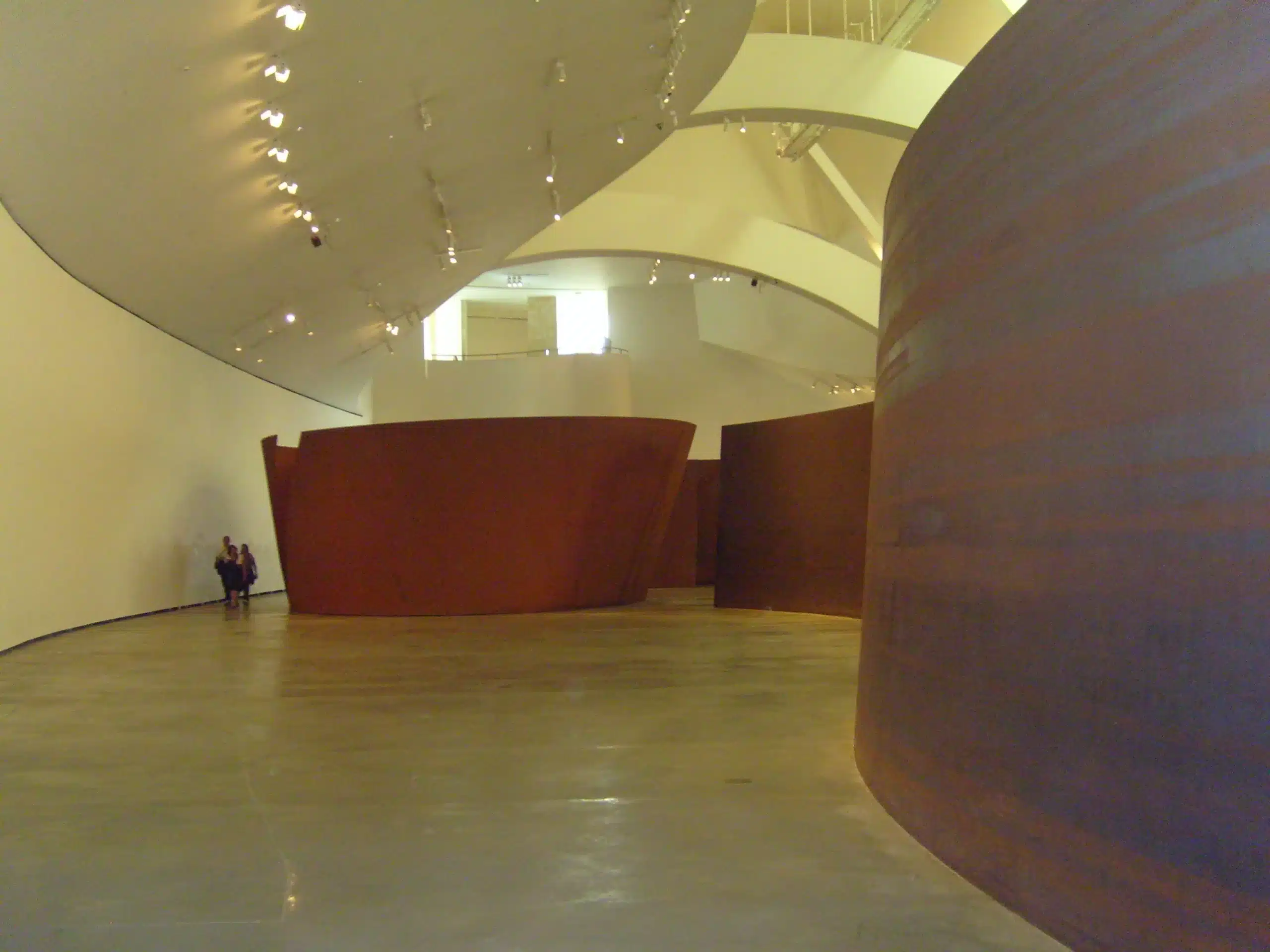 La prima azione istintiva è di alzare gli occhi verso il soffitto, per farsi rapire dai volumi, dai pieni e vuoti creati dalla presenza contemporanea di vetro e pietra, che permettono all’esterno di penetrare all’interno dell’edificio e viceversa. Camminando poi al piano terra si trovano alcune opere davvero interessanti, che fanno parte della collezione permanente del museo: la prima è sicuramente quella che mi ha emozionato maggiormente e si tratta degli otto “labirinti” di Richard Serra, ovvero “The Matter of Time”, in cui è possibile esperire davvero l’arte e divenire oggetti e soggetti d’arte camminando all’interno del percorso che è costituito dall’architettura e dalla forma di quest’opera.