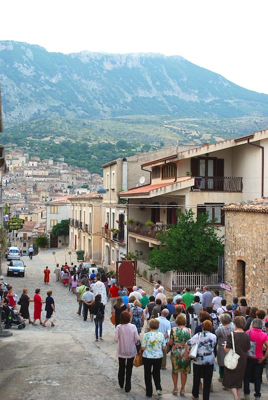 Civita sta lì, su un altopiano a strapiombo sulle strette gole del Raganello. Circa novecento abitanti, di cui una grossa parte è emigrata in qualche modo verso nord e torna solo d’estate, insieme alle altre centinaia di civitesi che si sono sparpagliati tra Roma e Francoforte e che ora non figurano più nelle statistiche demografiche del paese, ma che come mio padre tornano ogni anno, lasciano le t-shirt nell’armadio, indossano una vecchia camicia righe e la sbottonano sul petto per lasciar intravedere la catena d’oro con il crocefisso al collo. Come a dire “sono tornato, questo è ancora il mio paese”.