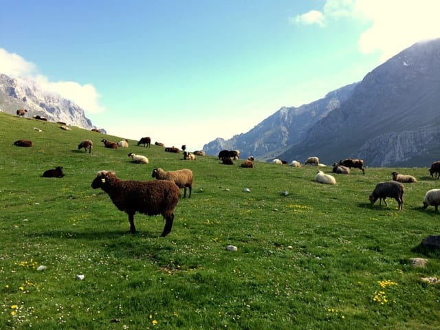 Oltre ai paesaggi montani davvero suggestivi, ciò che ha reso queste tre ore memorabili è stato il fatto che, per pura coincidenza, il giorno del nostro trekking coincidesse anche con il giorno della transumanza, ovvero quel giorno dell’anno in cui tutti i pastori spostano temporaneamente, ovvero per il periodo estivo, i loro greggi e mandrie verso i pascoli di alta quota. Ci siamo trovati così a goderci la vista di prati colmi di pecore e mucche e, a tratti, a dover dare loro il diritto di precedenza sul sentiero che stavamo seguendo.