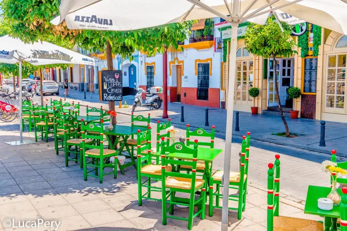 Nel frattempo Triana si è sviluppato anche artisticamente ed è stato riqualificato. L’influenza araba nello stile degli edifici, negli interni e nei locali – le famose teterias, locali dove si beve il tè – è ancora fortissima. Girovagare a piedi per le zone poco distanti dal fiume è un’esplosione di colori. Triana è il quartiere più bello di tutta la città.