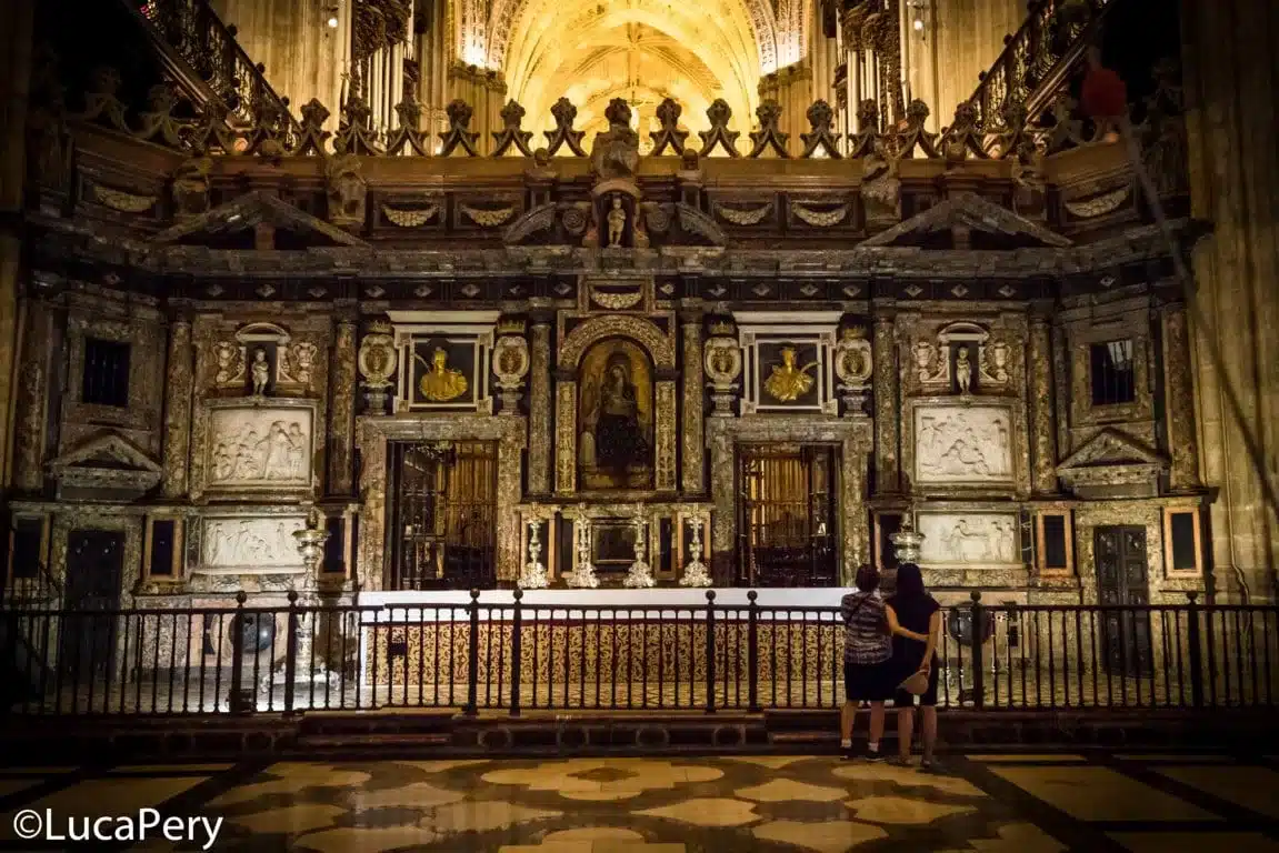 Al suo interno, tra le tante cose, vi segnalo la tomba di Cristoforo Colombo – per gli spagnoli Cristobal Colon -, il bellissimo altare caratterizzato da una pala d’altare d’oro – al quale non ci si può avvicinare, ci sono delle inferiate, e considerata la più grande al mondo – e il patío de los naranjos poco prima di uscire, un giardino con sessantasei alberi di arancio e una fontana al suo centro.