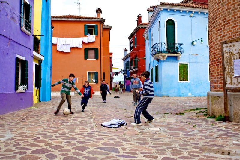 Dopo un’occhiata ai canali e alle fondamenta principali (le strade che costeggiano i canali), la parte più interessante della vista comincia quando ci si butta senza meta tra le calli più piccole, scoprendo deliziosi scorci un dopo l’altro. L’assenza di auto e moto, i colori della case, i panni stesi, i pescatori che chiacchierano o sistemano le loro barche, i bambini che giocano in mezzo alla strada creano un paesaggio da fiaba quasi solo per voi. Un incanto.