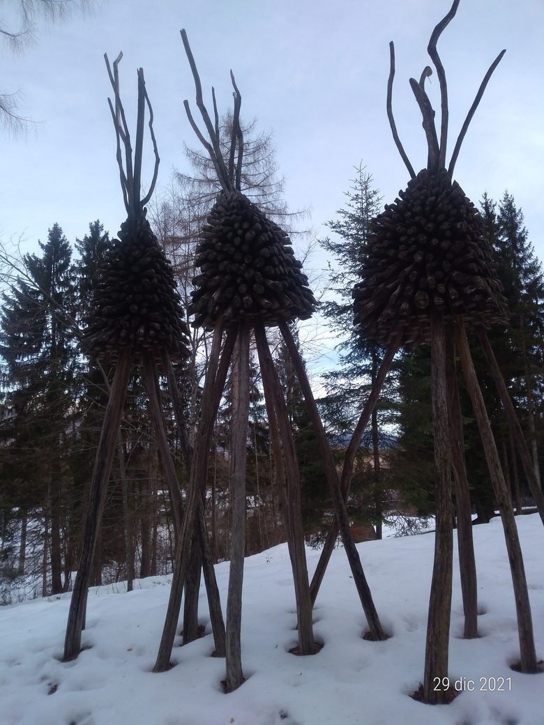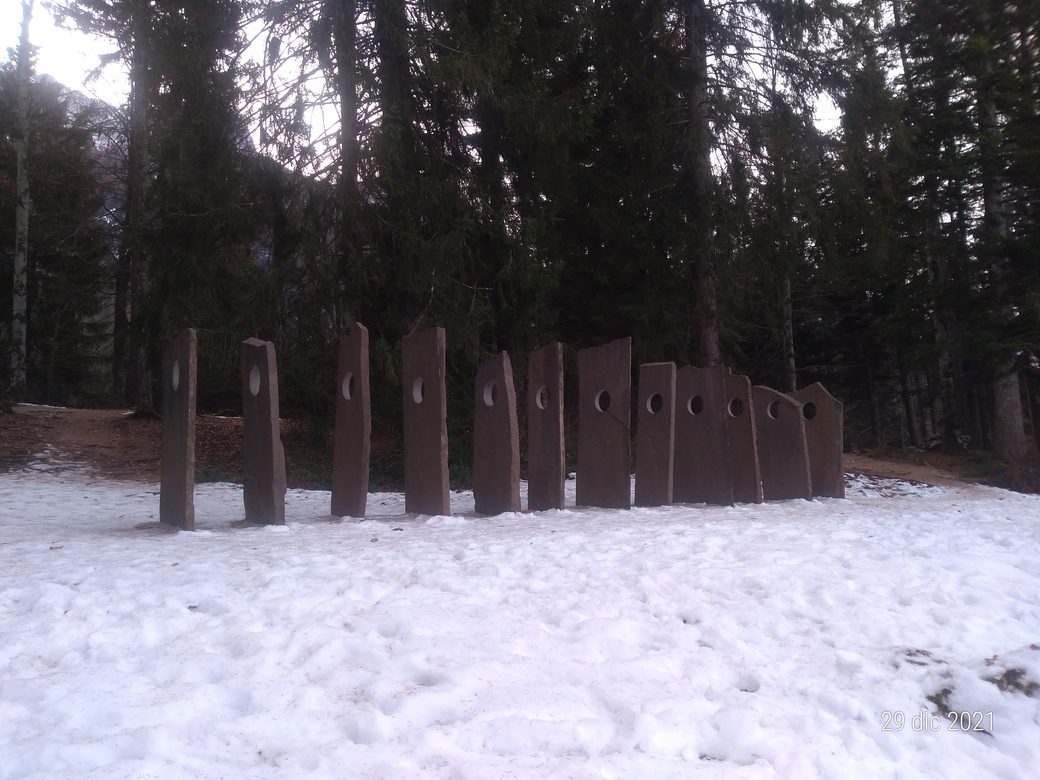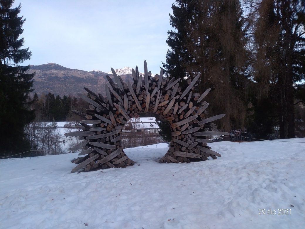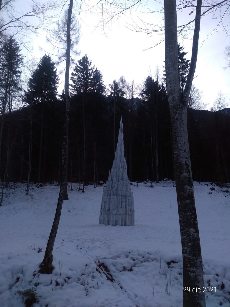 Io l’ho visitata sotto la neve e devo dire che l’atmosfera risultava ancora più magica se si pensa a sculture come “La torre della Luna”, che svettava diafana tra gli abeti spogli. Mi ha colpito anche un grande stupa in onore alle montagne asiatiche o le opere in legno che riprendono la forma delle pigne, o ancora il divertente “Sisifo” che sembrava sorreggere un bosco, o ancora la “Cattedrale” nuda sotto il manto bianco, come lo scheletro della basilica di San Gimignano in Toscana.