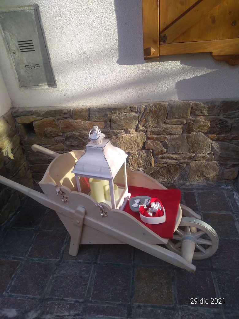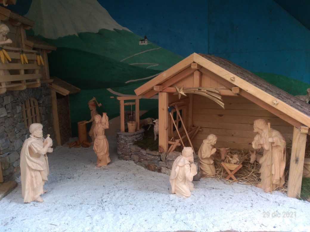 Io soggiornavo in un piccolo appartamento avuto tramite Airbnb, in un borgo di una cinquantina di case chiamato Ischia, ancora assolutamente integro, che si affaccia su una rupe che guarda il lago di Levico. Ed anche qui ogni antica casa sfoggiava presepi in legno, addobbi, rami di pino intarsiati di palline rosse, gnomi dai lunghi cappelli. Tutto il calore e l’ospitalità della gente di montagna.