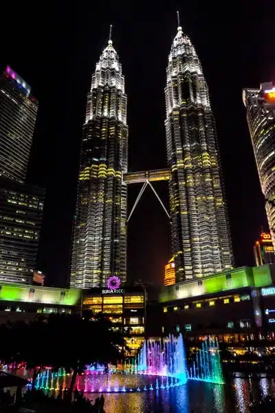 Intorno alle 20 potrete godere anche uno spettacolo di fontane danzanti multicolore nel KLCC Park, un giardino che si estende intorno al lussuoso centro commerciale Suria Mall KLCC che è anche il posto migliore per vedere le Torri Petronas.