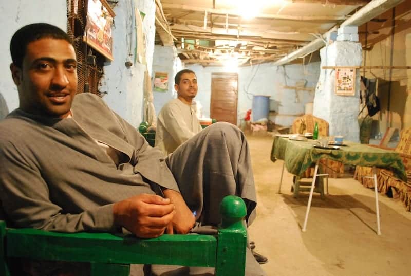 Arrivato in centro con il mio robusto zaino in spalle, mi sono messo alla ricerca di una camera. A quante pare, però, ad Esna non ci sono alberghi, cosa di cui non mi volevo convincere nonostante le risposte perplesse dei passanti a cui chiedevo informazioni. Alla fine proprio uno di questi passanti mi ha chiesto: “Quanto tempo ti vuoi fermare?” “Un paio di giorni” “Ma allora ti ospito io!”Detto fatto, mi sono ritrovato nello scantinato di una umile abitazione a due passi dal Nilo. Incluso nel pacchetto, inoltre, ho trovato la gentilissima mamma del mio benefattore, che non ha mai perso un’occasione per offrirmi qualcosa da bere o da mangiare durante tutto il mio soggiorno. Il che era un bene, perché senza alberghi né ristoranti in vista, in strada trovavo solamente falafel e panini imbottiti con fegato di vitello.