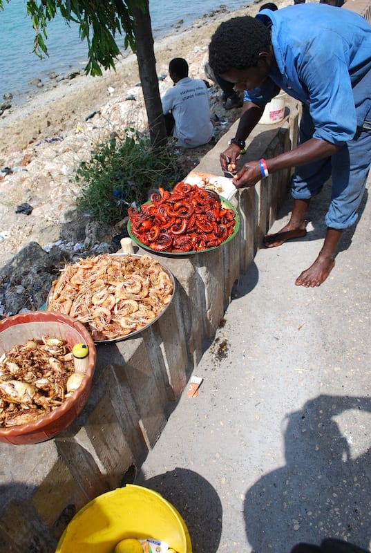 Sono arrivato a Dar es Salaam il pomeriggio seguente, dopo circa 25 ore trascorse sul treno. La città appariva grigia e monotona, ma la sera si animava di musiche e mercati. Era il periodo del Ramadan, e solo dopo il tramonto la maggioranza musulmana della città si riversava sulle strade per bere té caldo, consumare dolci ed enormi pentoloni di fagioli e rallegrarsi con la musica emessa da radioline a batterie. Vicino all’area portuale, da dove partono i traghetti verso Zanzibar che io non avrei preso, c’è il mercato del pesce, dove è possibile tra l’altro acquistare gamberie calamari crudi, da consumare con una spruzzata di limone portandoseli via avvolti in un foglio di giornale.