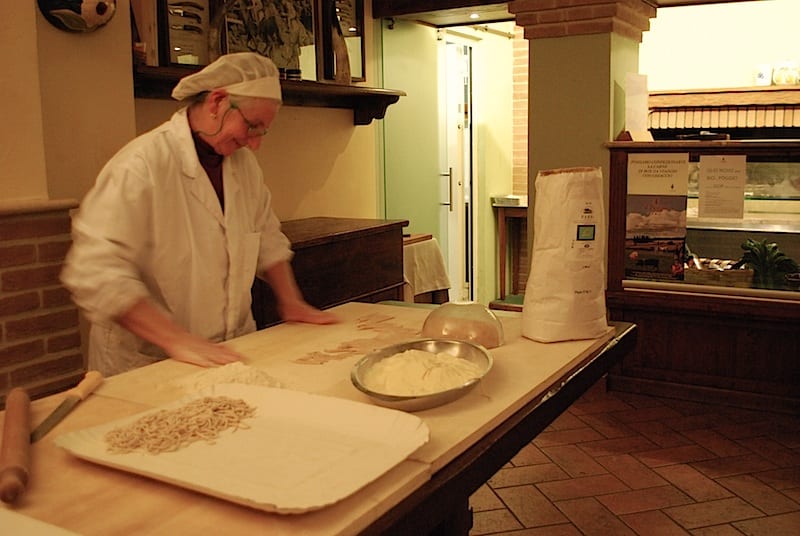 La pasta è sinonimo di pici, spaghetti lunghi e tozzi lavorati a mano abbinati spesso a sughi rossi arricchiti con carne bovina o suina. E quando si parla di carne, a Siena si parla di chianina e di cinta. La prima è una razza bovina dal caratteristico manto bianco porcellana, già utilizzata da etruschi e romani nei cortei trionfali e come sacrificio agli dei. Dalle sue carni è nata nel Rinascimento la fiorentina e, in seguito, molti succulenti piatti della cucina locale. La cinta senese è invece la razza suina più antica d’Italia, di taglia media, con cute nera e una caratteristica fascia rosata. Le sue carni sono adatte al consumo fresco e consentono di preparare salumi ottenuti ancora oggi secondo le antiche ricette tradizionali.