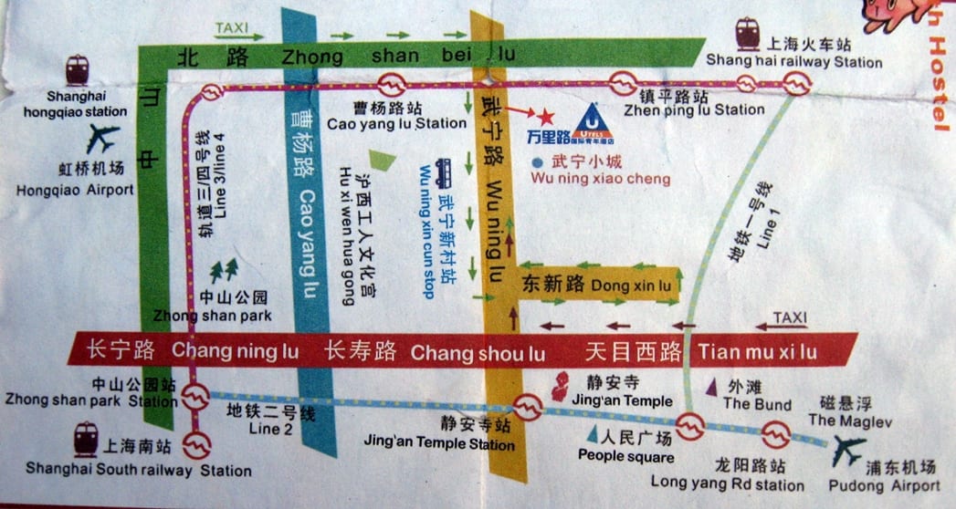 Se siete già in città, potete semplicemente recarvi lì di persona al N3000 di Wu Ning Road, distretto Putuo. Si raggiunge facilmente a piedi (5 minuti con una valigia) dalla fermata metro delle linee 3 e 4 di Caoyang Road. Prendete una delle uscite a destra delle scale – quindi non quella che dà sul parcheggio di motorini e sullo spiazzo in cemento – e andate a destra. Camminate sotto il cavalcavia della metro tenendovi sul lato destro, arrivate all’incrocio e attraversate, girate a destra per forse neanche dieci metri e troverete l’ingresso ad una viuzza interna, con sulla sinistra una cartello UTELS. Entrate e camminate per una quarantina di metri. Sulla destra c’è un viottolo, l’ingresso dell’ostello.