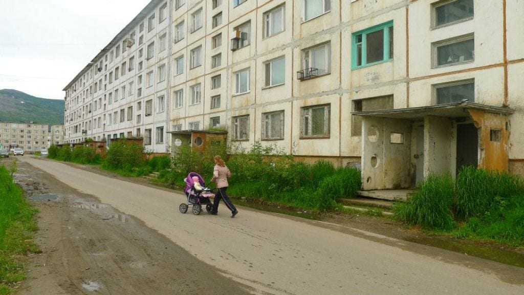 Qui si respira ancora aria sovietica: i giovani, tanto quanto gli anziani, rimpiangono i tempi passati. Magadan è un triste esempio di gloria decaduta. Una volta, mi dice un anziano, questa era la città modello: gli edifici erano tutti tenuti bene, le facciate colorate e le strade erano rifatte annualmente; oggi sembra la Stalingrado degli anni ’50 e, in effetti, mi rendo conto che non ha tutti i torti: gli intonaci degli edifici cadono a pezzi, le strade hanno buchi profondi 40cm persino nel centro della città.