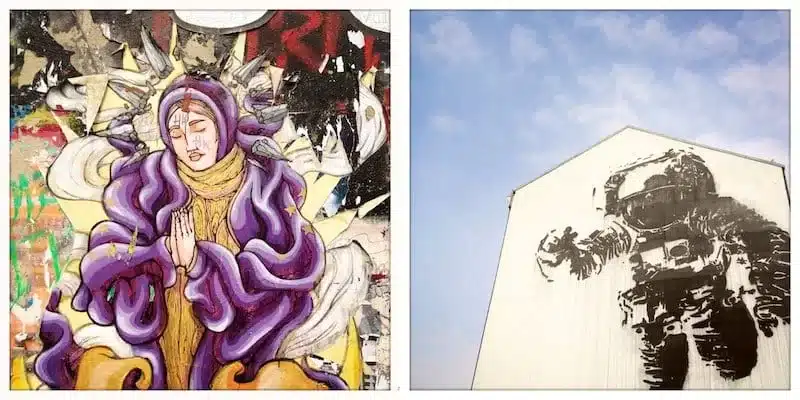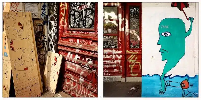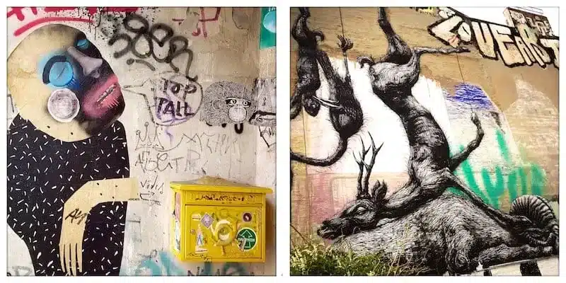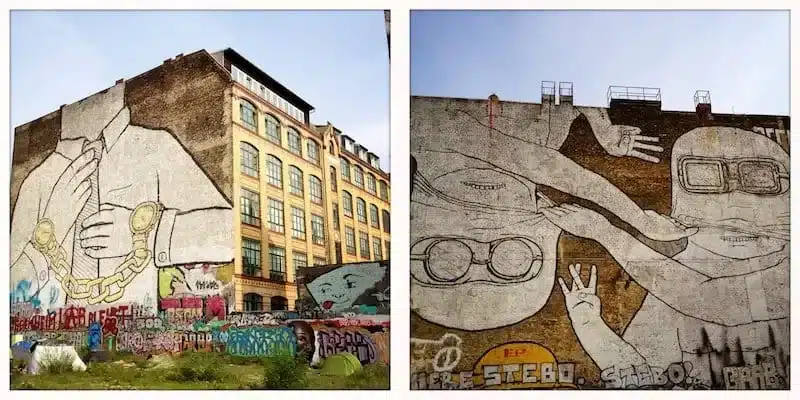 Kreuzberg si trova subito sotto il centro cittadino (l’area identificata con il nome di Mitte). Come in molte zone di Berlino, la street art ha un ruolo caratterizzante molto forte. Se ne trova un po’ ovunque. Negli atri delle case, sui pezzi del Muro esposti in diversi punti, su intere pareti degli edifici. Da notare i famosissimi murales dell’artista italiano BLU che si trovano nella zona di Kreuzberg-Friedrichshain. L’uomo moderno schiavo del tempo e la rappresentazione della riunificazione (ovest e est che si scoprono a vicenda).