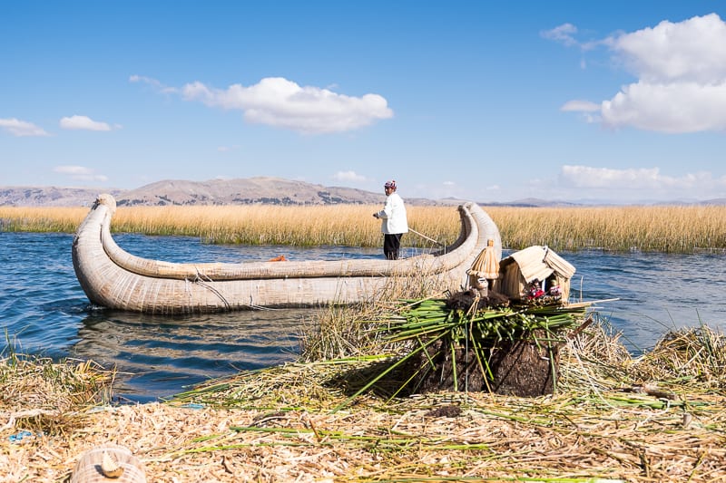 Una volta sull’isola, uno dei suoi abitanti, ci ha istruiti sul modo in cui queste isole vengono costruite e mantenute, ovvero con strati di canne galleggianti di totora che crescono abbondanti nelle acque del lago Titicaca. Sebbene si sia trattato di una breve sosta, l’esperienza fatta qui è stata preziosa e il calore ricevuto da coloro che ancora abitano quest’isola l’ha resa ancora più preziosa.