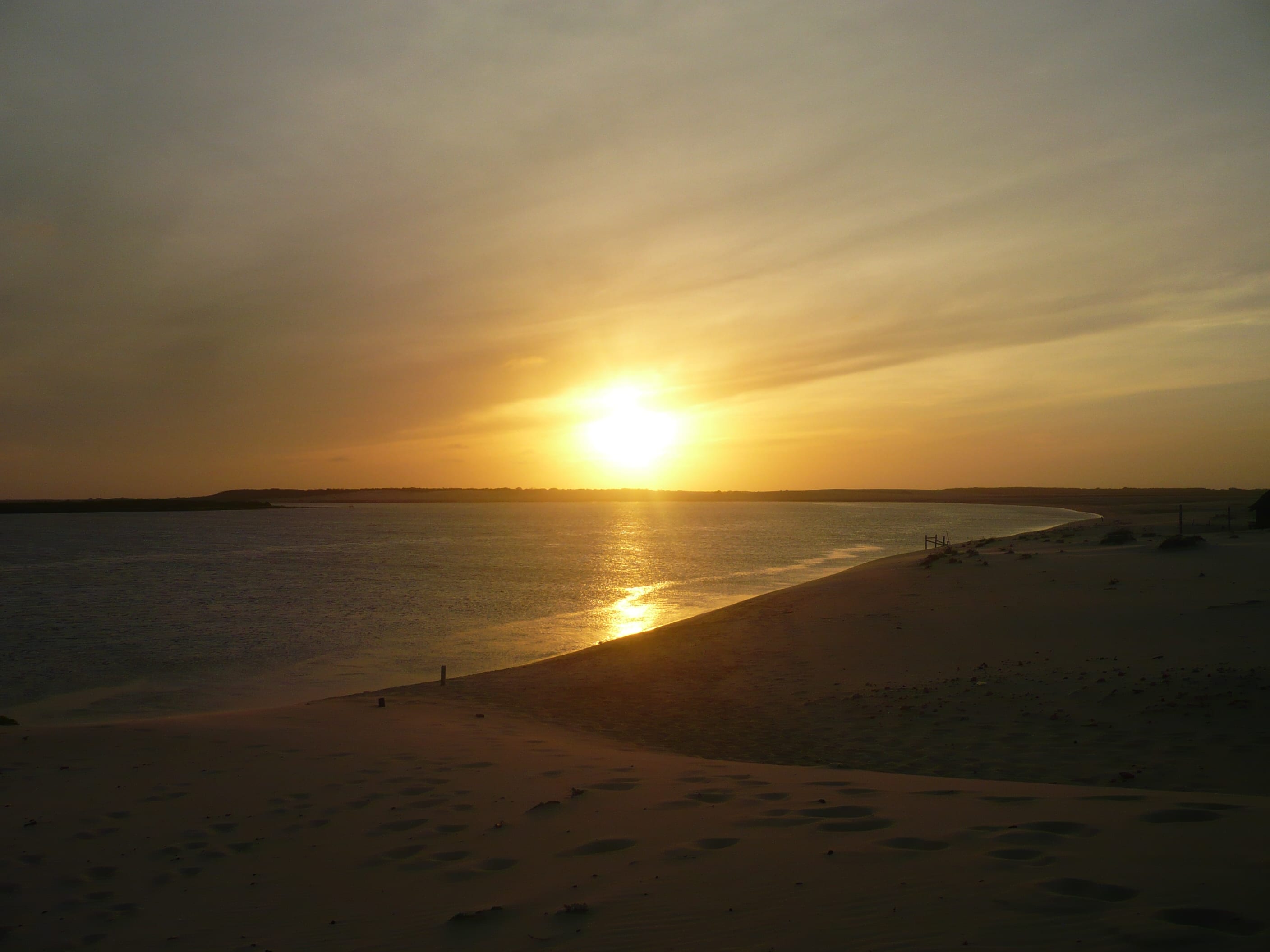 Camminando troviamo poi anche una sorta di impalcatura di legno in cima alla quale è possibile avere una visuale completa del lembo di sabbia stretto tra fiume e mare. Anche Caburè ci regala uno splendido tramonto sul fiume e poi ci prepariamo velocemente per la cena. Consumiamo una non esaltante cena poi torniamo in camera nell’attesa dell’oscurità assoluta che puntuale, alle dieci, ci avvolge.