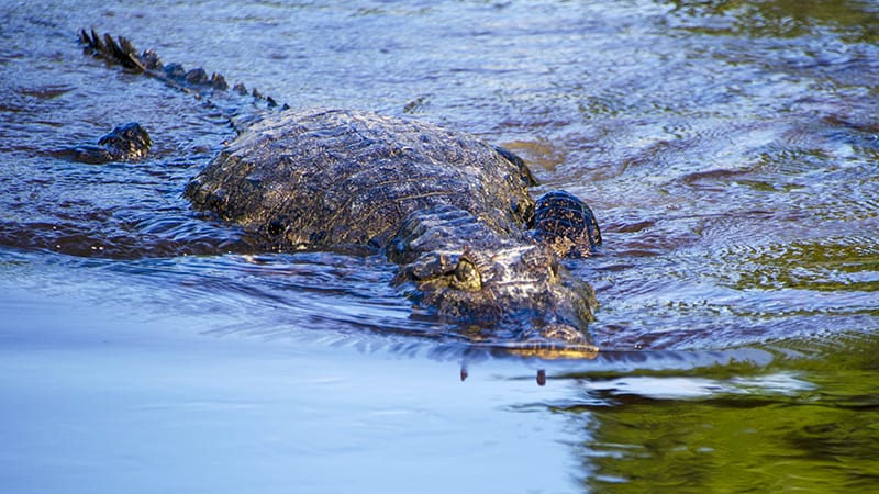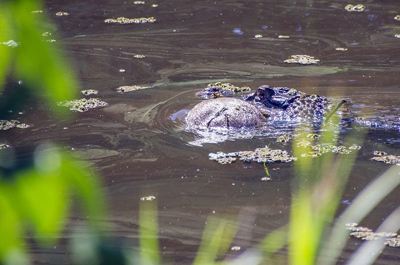 Ci avviciniamo per una foto, spaventati scappano dal terrapieno, è un attimo, trapestio, canne che sbattono, acqua che si agita – un caimano! cos’ha in bocca? – il piccolino! – silenzio, colpa nostra, è la natura, rimorso.