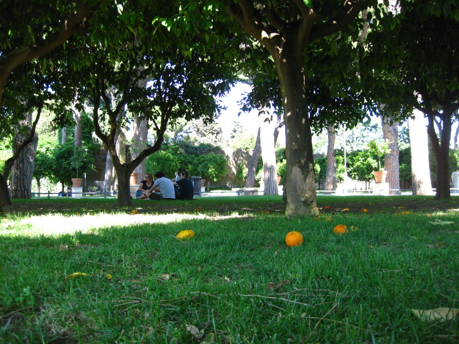 Mi sposto con i mezzi per raggiungere un’altra parte di questa poliedrica metropoli, dai mille affascinanti volti, a tratti ipnotici per l’incantevole e immutabile bellezza. Percorro a piedi un breve tratto del lungotevere Aventino, per poi intraprendere l’inerpicata salita che mi conduce fino al paradiso verde e arancio di Parco Savello. Conosciuto come il Giardino degli Aranci, questa piccola e discreta oasi di relax offre anche un’incantevole visione panoramica della città. Mi distendo sull’erba e, tra una pagina e l’altra del mio bel libro, mi godo l’imperitura e rasserenante visione impressionista che questo magico posto mi riserva: mamme e papà con passeggini, giovani innamorati adagiati sulle panchine, nonni che giocano coi nipotini, ragazzi e ragazze che leggono, ridono, studiano e si ritagliano del tempo per starsene tranquilli.