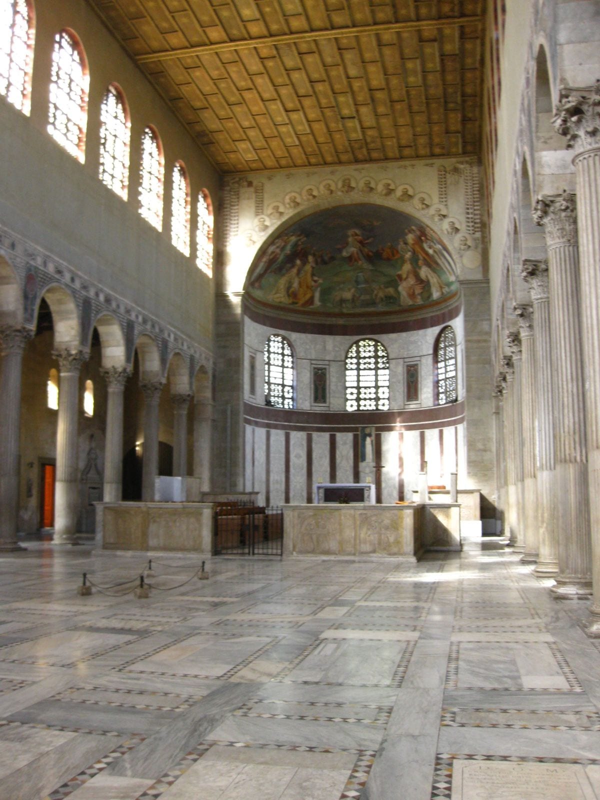 Accanto al parco, la Basilica di Santa Sabina trapela spiritualità. Risalente al 422, ampliata e restaurata nei secoli successivi, conserva l’imponente portale di legno di cipresso intagliato, originale del V secolo, costituito da diciotto pannelli raffiguranti scene dell’Antico e del Nuovo Testamento. Alle spalle della chiesa un chiostro duecentesco ospita aranci che la leggenda vuole essere stati piantati da San Domenico in persona.
