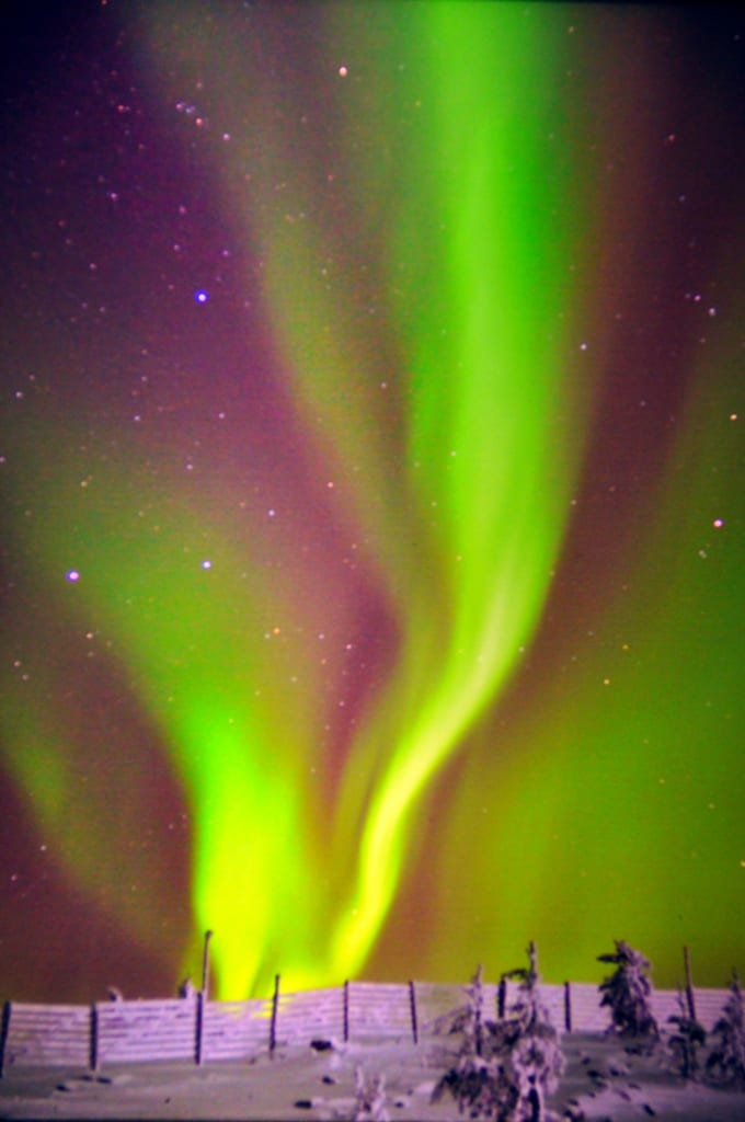 L’aurora boreale incontro alla quale, come vuole la leggenda, si deve gridare a squarciagola per scacciare gli spiriti maligni.