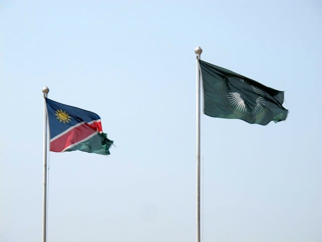 Il viaggio, come anticipato, risulta molto lungo e, a parte brevi soste lungo la strada per sgranchirsi le gambe e per consumare un frugale pranzo a base di sandwiches, l’unica altra sosta è alla frontiera. Sento molto forte l’emozione di entrare in Namibia perché è da molto tempo che inseguo il sogno di visitare questo paese. Le frontiere che attraversiamo mi deludono un po’, speravo fossero un po’ più folkloristiche mentre invece, a parte la bandiera e un freddo cartello, qui nulla parla del paese che stiamo lasciando e di quello in cui stiamo entrando. La mia mente vola per un attimo alla frontiera più bella che io abbia visto, ovvero a quella tra Messico e Guatemala: un mercato colorato ed affollato, lungo chilometri, accompagna il passaggio tra i due paesi ed un enorme cartello con il nome dello stato ti informa che stai varcando la linea di confine.