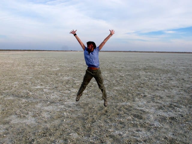 Verso la fine della giornata il nostro camion giunge in un punto del parco dalle sembianze lunari: si tratta dell’Etosha Pan, una depressione salina di 5000 chilometri quadrati. Il bianco intenso del suolo salino rende questa sorta di deserto un luogo molto affascinante. Scendiamo dal camion e iniziamo a correre, a saltare, come se questo paesaggio sconfinato avesse infuso in noi un forte senso di libertà. Mentre cammino mi stacco dal gruppo per cercare di cogliere al meglio il “qui ed ora” che un posto di tale bellezza può offrire, le emozioni che può regalare, la felicità che sento crescere dentro di me.