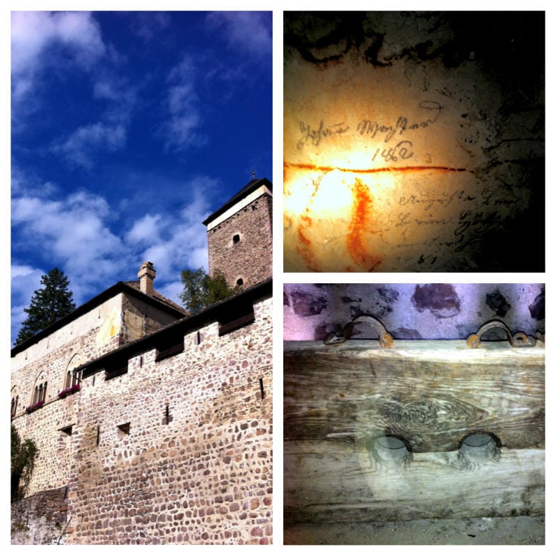 Esploriamo gli interni salendo scale in legno tutt’altro che stabili, guidati da Walter Perkmann, direttore dell’Associazione turistica Val Sarentino, che ci mostra strumenti di tortura e strane incisioni sui muri: c’è poca luce e l’atmosfera è davvero surreale, per non dire inquietante!