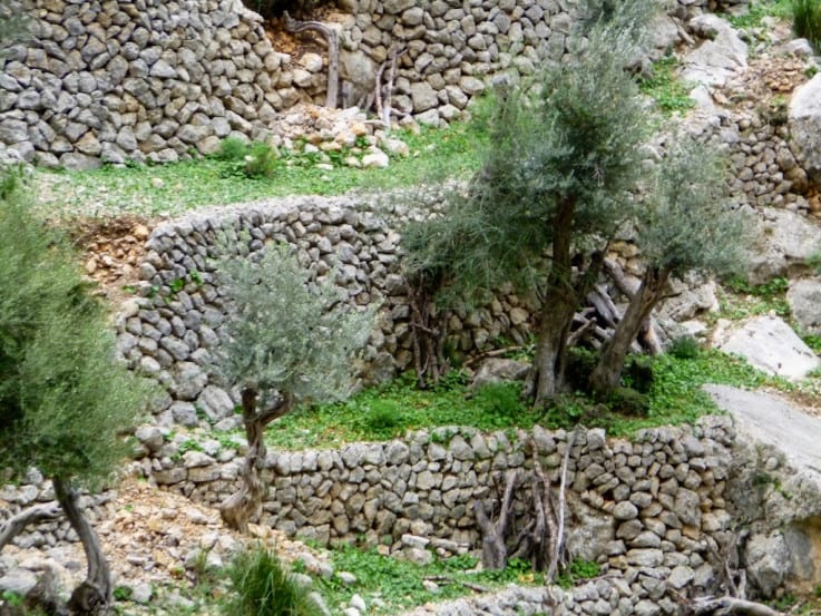 Il nostro programma, però, ci ha condotti lungo il secolare sentiero in pietra verso lussureggianti campi verdi, racchiusi da muretti a secco eretti lungo tutto il percorso fino alla gola per creare dei terrazzamenti per gli ulivi. La costruzione dei muretti a secco si svolge tramite tecniche artigianali che fino a poco tempo fa rischiavano di essere dimenticate per sempre. Ora invece questa attività sta riprendendo vita, grazie a persone che desiderano impararne le tecniche dagli esperti artigiani della zona.