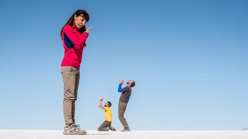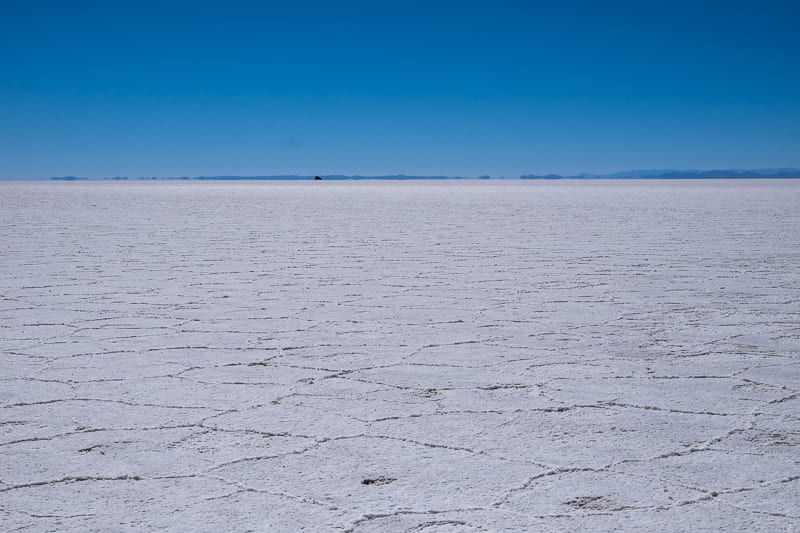 Quello di cui parlo è la distesa salina più grande al mondo (12.106 kmq) situata ad un’altitudine di circa 3500 sul livello del mare. E’ sufficiente inoltrarsi nel Salar pochi chilometri e il panorama si fa quasi surreale: solo due colori lo caratterizzano, ovvero il bianco abbagliante del suolo e l’azzurro intenso del cielo. Un contrasto tanto magnifico quanto spiazzante.