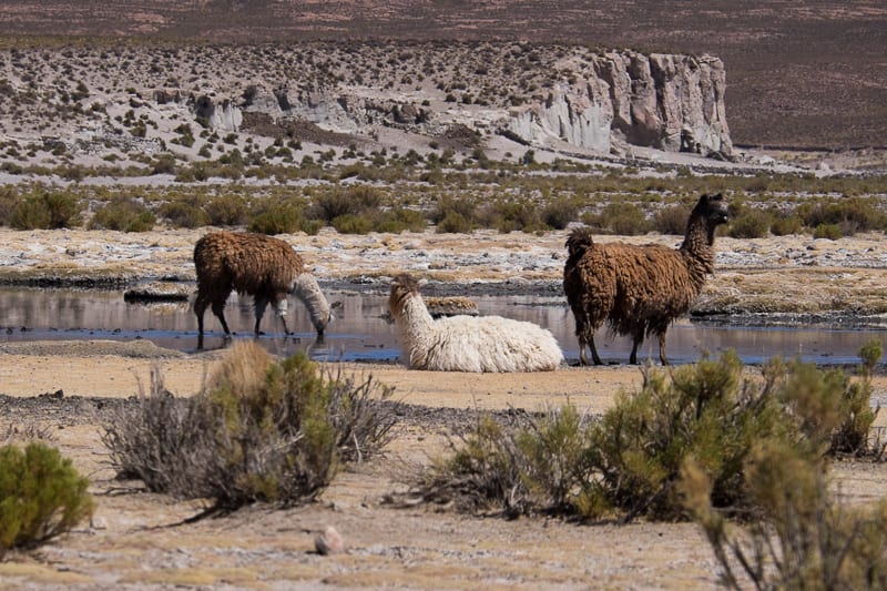 I territori che abbiamo iniziato ad attraversare ci hanno lasciato fin da subito senza fiato: abbiamo infatti goduto della vista di sterminate pampe arbustive, deserti, vulcani, placide vigogne al pascolo e lagune dai colori abbaglianti che ospitavano sterminati gruppi di fenicotteri. Il tutto ad un’altezza superiore ai 4000 mslm!