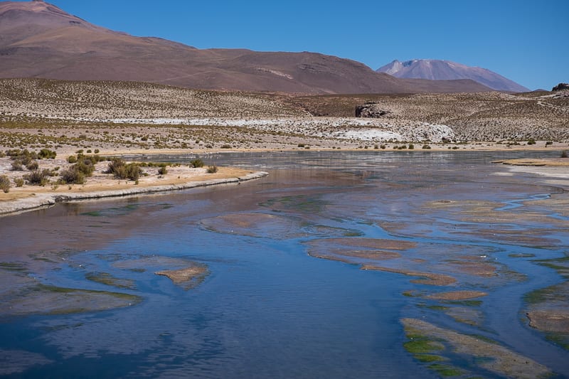 La nostra prima giornata nella Riserva Eduardo Avaroa si è conclusa con la magnifica visione della Laguna Verde, adagiata nella parte sud occidentale del territorio boliviano, e con la visita, quasi in notturna, alla zone dei geyser. La Laguna Verde deve il suo nome proprio al fatto che le sue acque presentano questa colorazione smeraldo dovuta all’elevata concentrazione di piombo, zolfo, arsenico e carbonato di calcio. Le spioventi montagne che la circondano creano la perfetta cornice ad un paesaggio già di per sé magnetico.