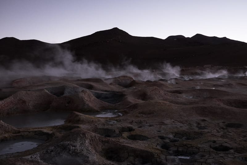 Molto emozionante è stato anche aggirarsi in mezzo a numerosi geyser situati ad una altezza di 4920 mslm, al calare della luce con l’aria che ormai si era fatta molto pungente.