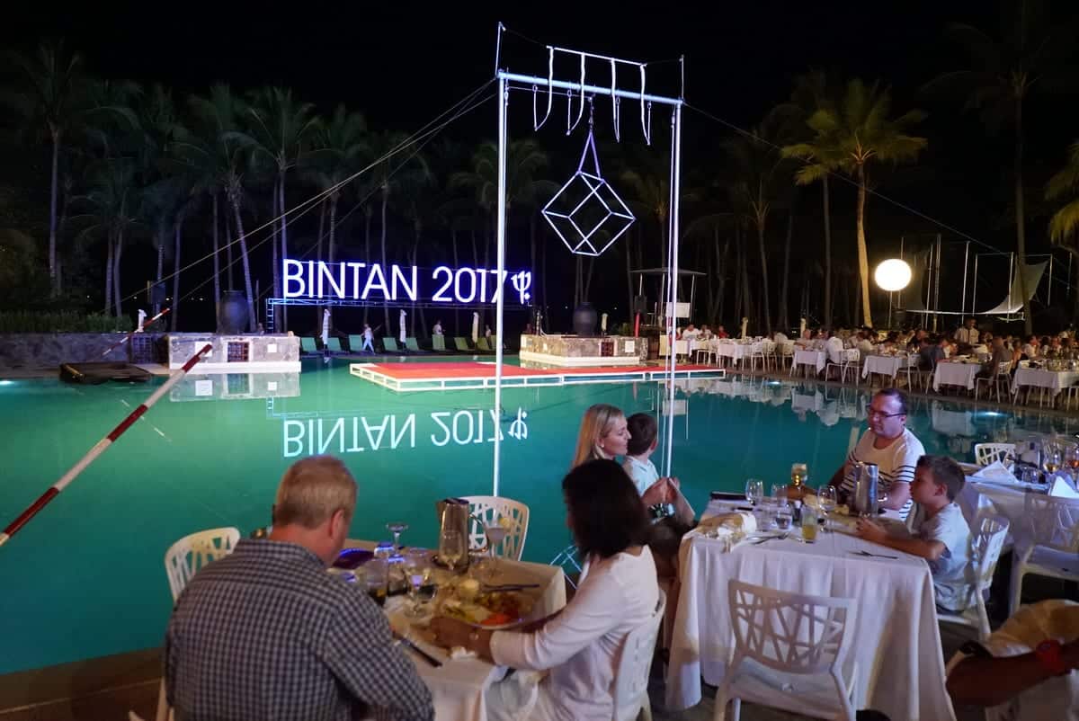 Due grandi piscine a pochi passi dalla spiaggia s’incrociano con bar – dove ci si può fermare spesso e volentieri per dei drink, che sono inclusi nel pacchetto – angoli relax e onnipresente vegetazione, fino alla distesa del vicino Ria Bintan, uno dei più grandi campi da golf di tutta l’Asia, con le sue verdeggianti colline che si affacciano direttamente sull’oceano.