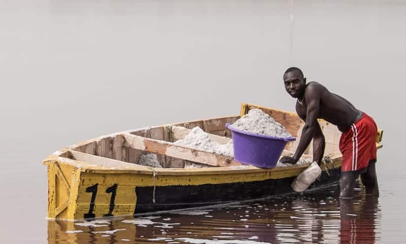 In un’ora circa d’auto raggiungiamo una delle località più note del Senegal, il Lago Retba, meglio noto come Lac Rose. E’ chiamato così per via del colore delle sue acque che, essendo popolate di alghe che secernono un pigmento rosso, donano un effetto rosato.