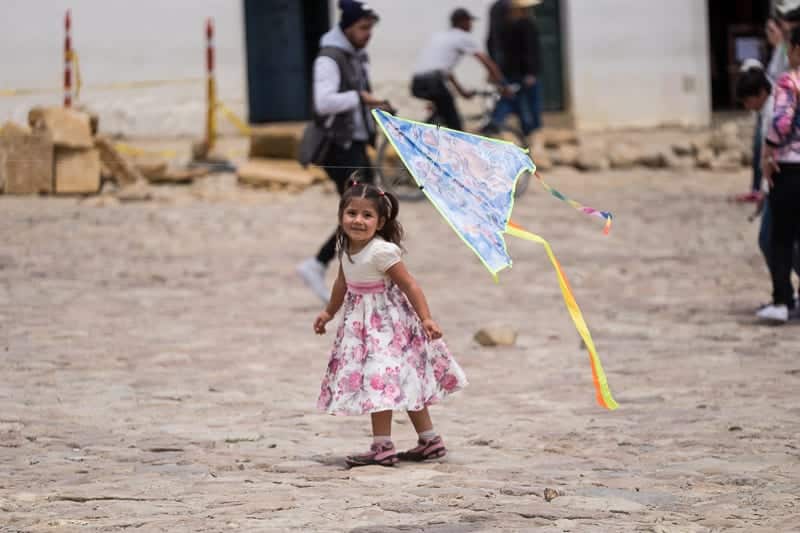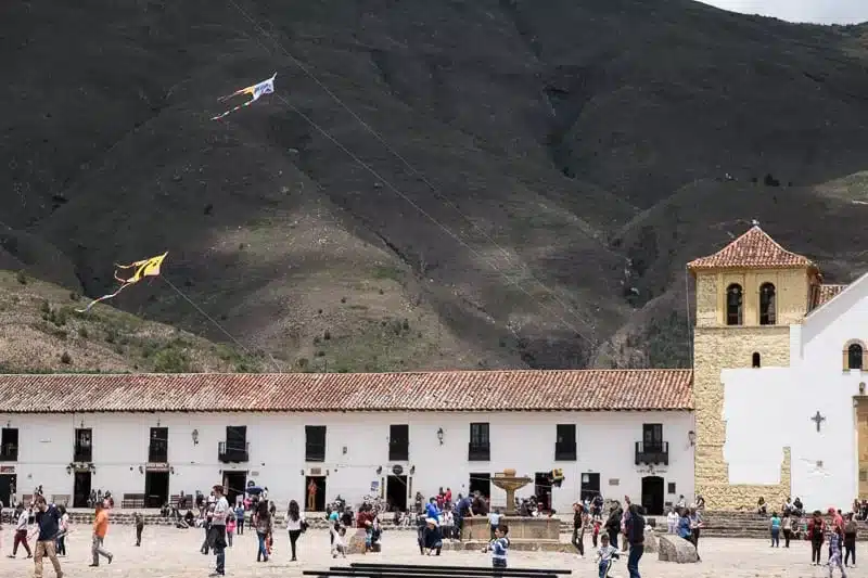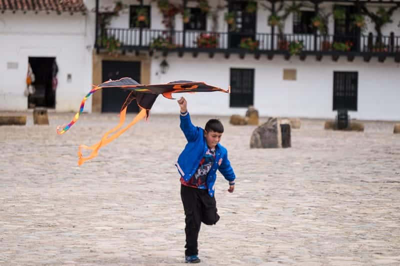 Ora vi spiego meglio cosa intendevo prima quando ho parlato delle due anime della città. Noi siamo arrivati nel week end durante il quale vi si recano molti turisti, per lo più provenienti dalla caotica Bogotà. La domenica la piazza centrale si anima di centinaia di famiglie che portano qui i loro bambini che, con grande perseveranza, cercano di far volare in alto nel cielo i loro aquiloni.