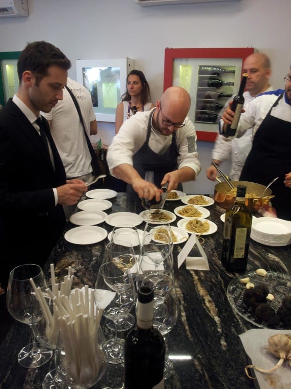 Ho avuto il piacere ammirare all’opera gli chef Daniele Maurizi Citeroni dell’Osteria Ophis, Aurelio Damiani di Damiani & Rossi ed Enrico Mazzaroni del Ristorante Il Tiglio ed è stata un’esperienza entusiasmante!