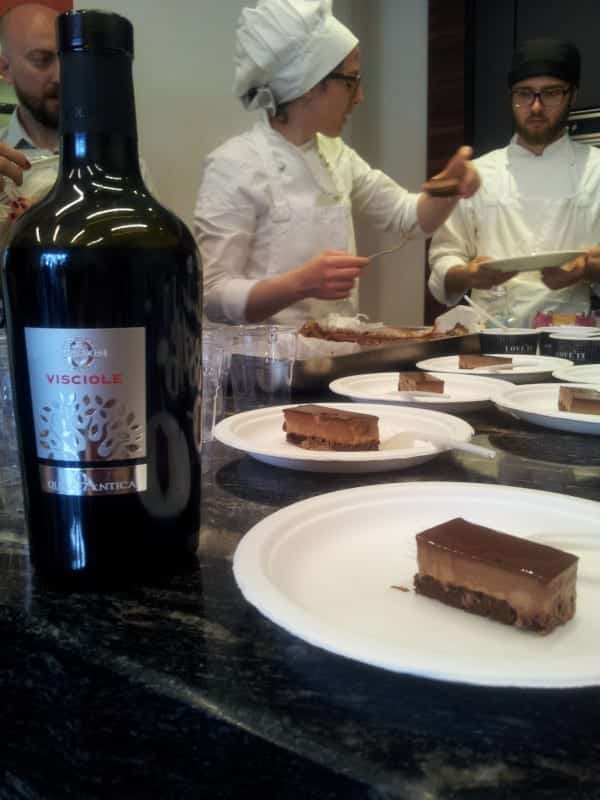 Con Enrico Mazzaroni ho scoperto che a volte è l’amore a guidare la creazione dei piatti dello chef. Una semplice Patata dei Sibillini sotto la cenere, quando conserva dentro di sè il ricordo dell’antica dolcezza della nonna, diventa un piatto ricercato e superlativo al quale abbiamo abbinato di nuovo l’Offida Passerina. L’ottima Torta di cremoso al cioccolato a seguire, abbinata al particolare vino di visciole, forse meno emotivamente coinvolgente per lo chef, ha sicuramente esaltato tutti i palati dei presenti!